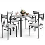 This 5-piece kitchen table set includes a stylish faux marble tabletop and four cushioned side chairs, blending modern elegance with everyday functionality. Ideal for dining 4–6 people, it’s perfect for Sunday dinners, casual meals, or even as a multi-purpose workspace. Use it as a dining table, computer desk, study table, or even in commercial spaces like cafés, restaurants, pubs, clubs, or patios.