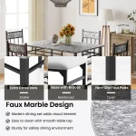 Space-Saving 5-Piece Dining Table Set for 4 – Modern Faux Marble Kitchen Table with Upholstered High-Back Chairs
