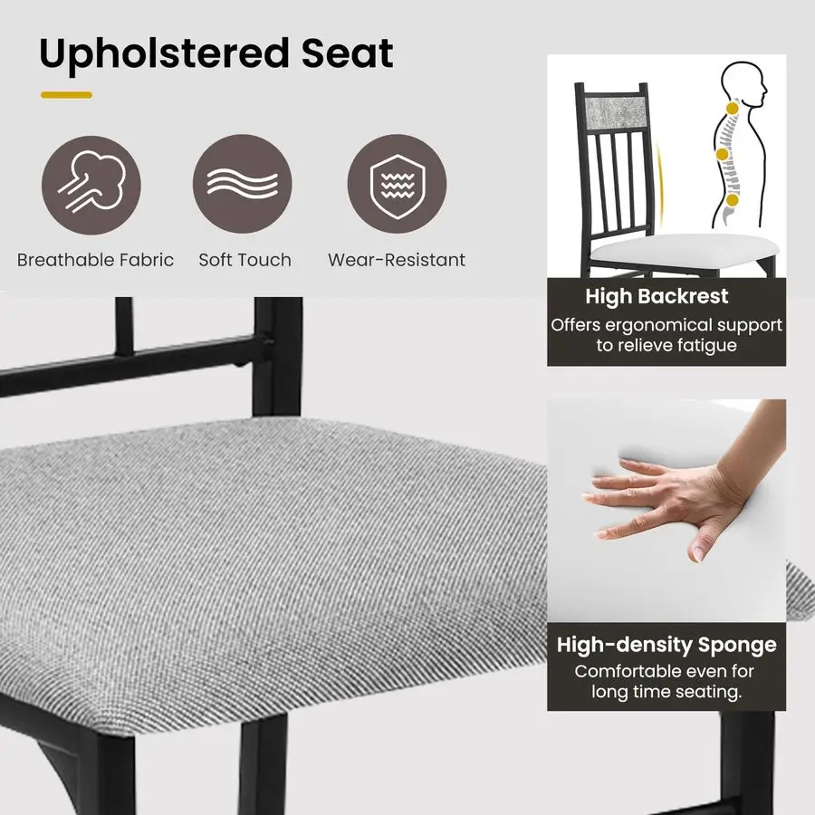 Designed with comfort in mind, the high-back dining chairs follow ergonomic principles to provide excellent back support and help reduce fatigue during extended seating. Each chair is padded with high-density sponge cushioning and finished with breathable, soft upholstery, offering a comfortable and cool sitting experience.