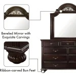 Expertly built with solid wood and veneer construction, this bedroom set offers long-lasting strength and stability. The Queen-size bed frame is designed for enhanced comfort and durability and requires a box spring for optimal mattress support. Clean lines, refined detailing, and a deep walnut tone create a polished look that elevates your space instantly.