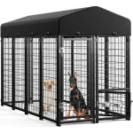 Give your dog a secure, spacious, and weather-ready outdoor home with this 8x4x6 FT Heavy-Duty Outdoor Dog Kennel—engineered for strength, safety, and convenience. Designed for giant, large, and medium dogs, this kennel features an improved removable small door panel that connects seamlessly to a doghouse, allowing your pet to retreat indoors on chilly nights.