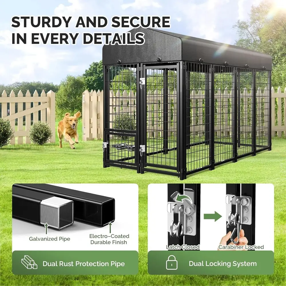 8x4x6 FT Heavy-Duty Outdoor Dog Kennel with Removable Door, Dual Locks & Waterproof Roof – Expandable Rust-Resistant Dog Run for Large Dogs